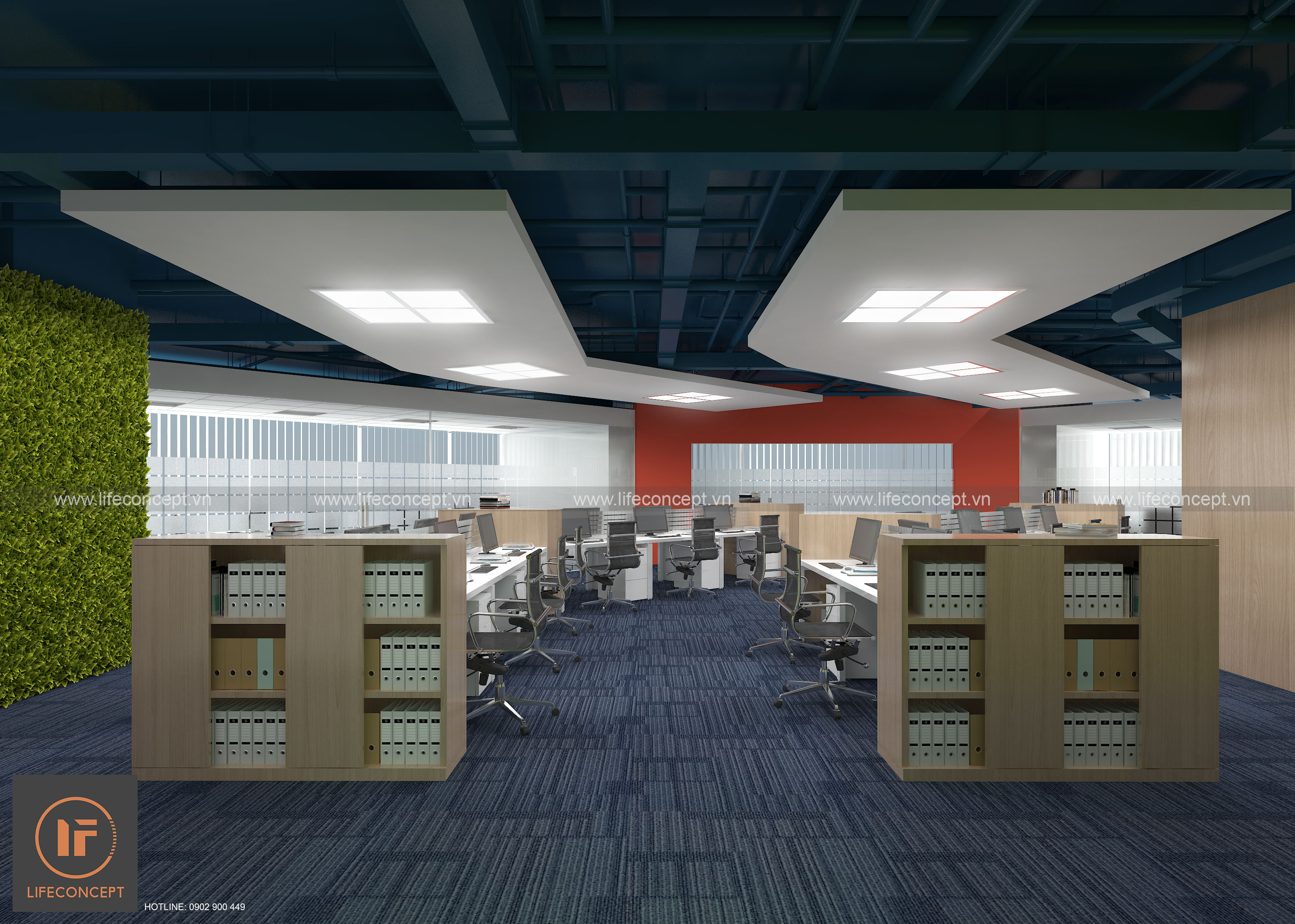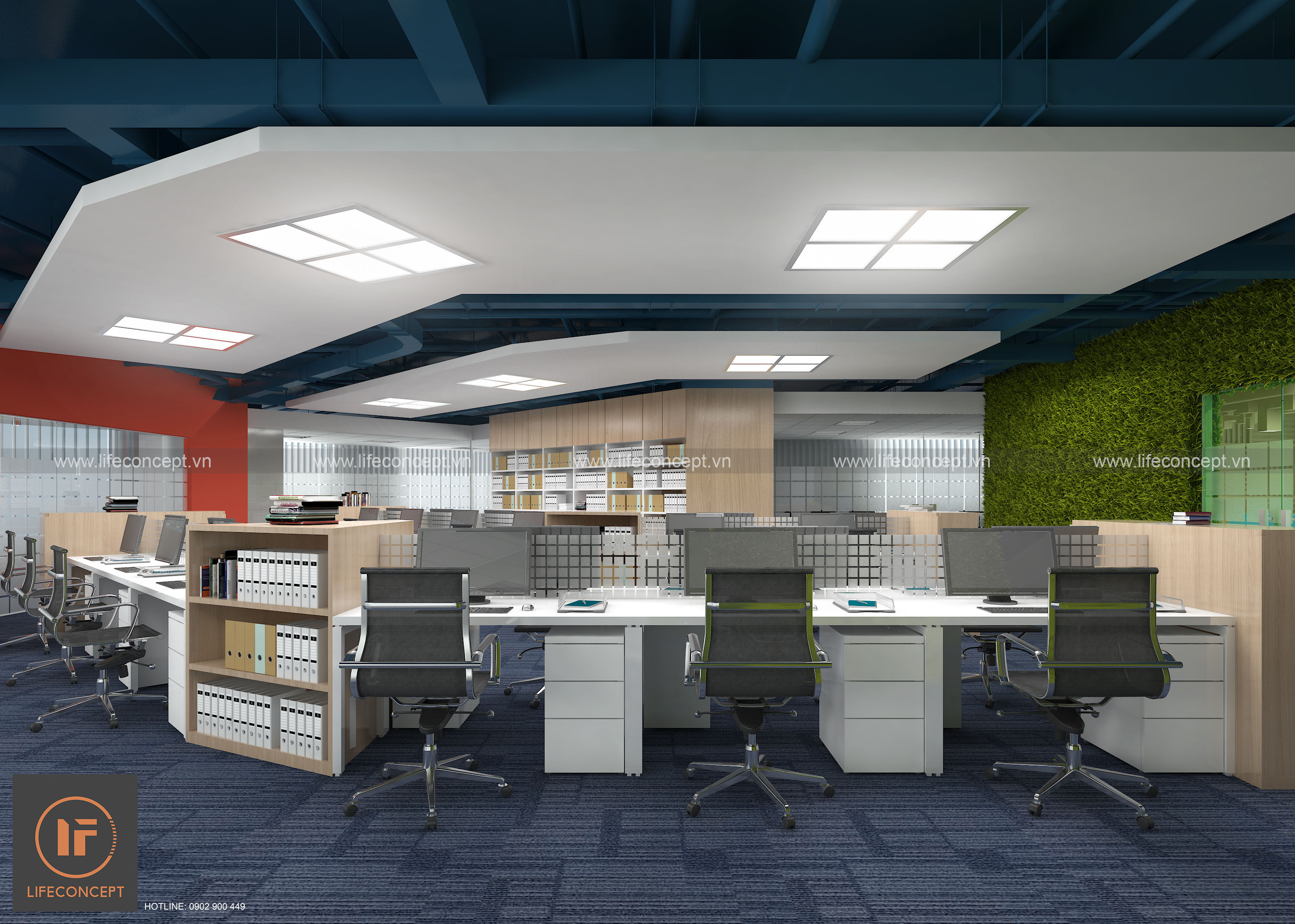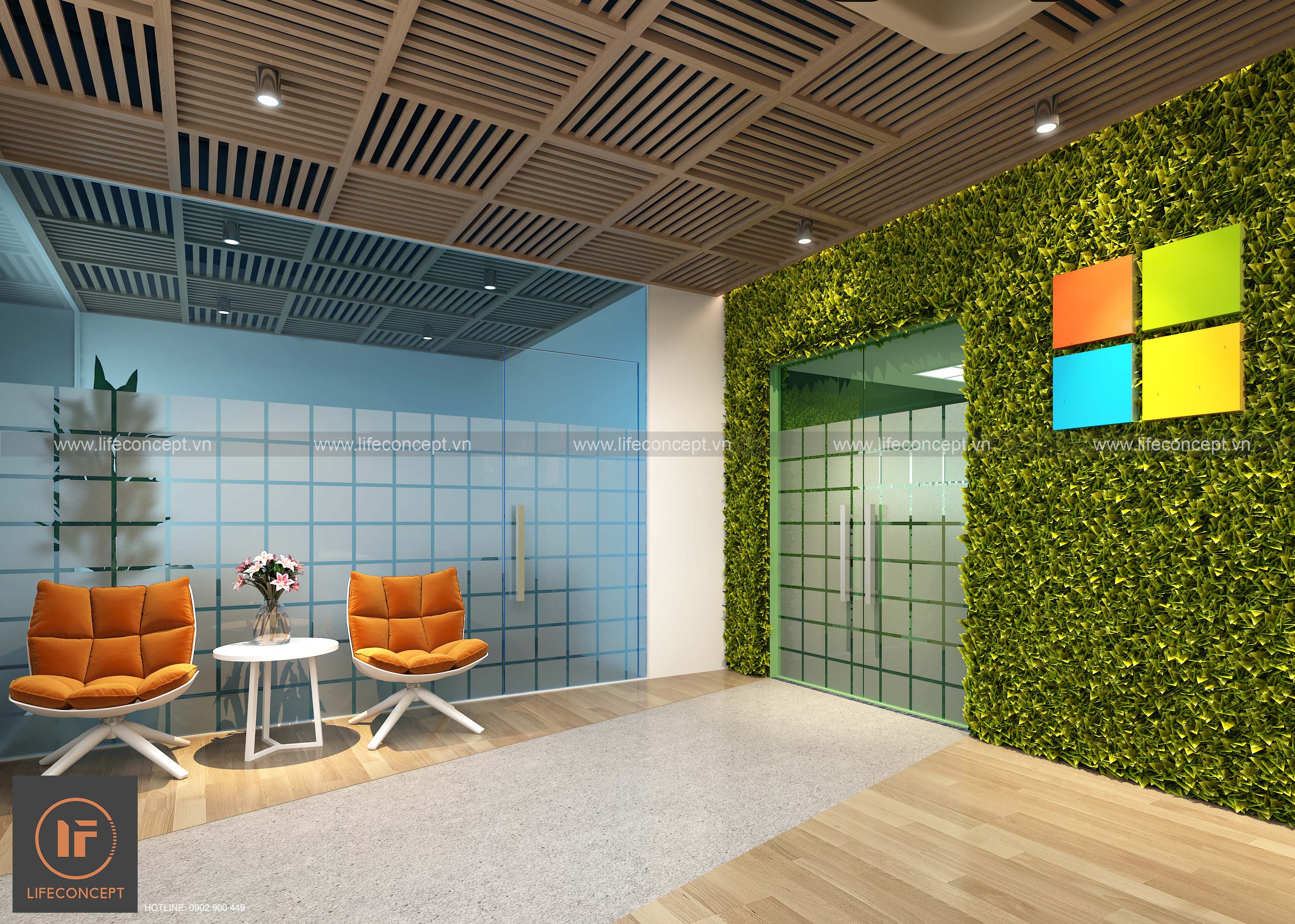 >Ý tưởng thiết kế: Sử dụng phong cách hiện đại, màu sắc và biểu tượng từ LOGO tạo nên phong cách riêng cho không gian văn phòng.